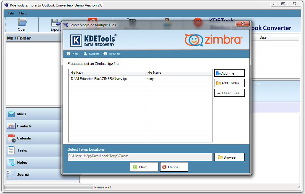 [Steps-2] - Press on the 'Open' option to load Zimbra TGZ files and click on either the 'Add File' or 'Add Folder' option.