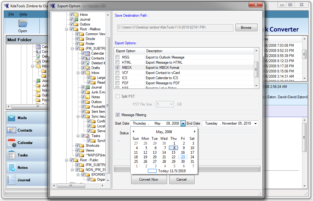The user can perform selective item conversion as the software allows its user to select the desired folder and convert it in the selected file format. The users can convert the selected Zimbra folder in the desired file format.